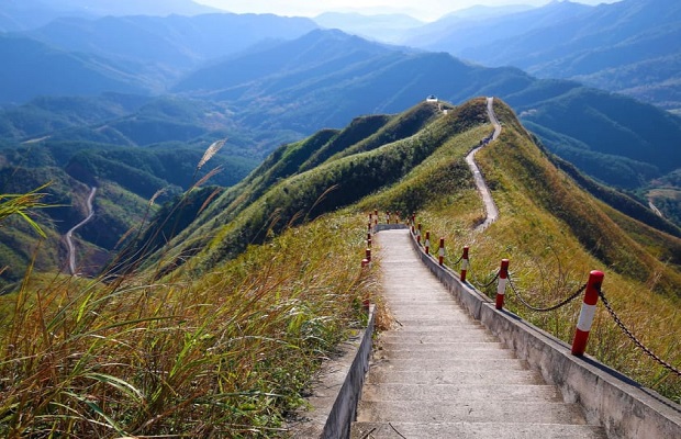 Sống lưng khủng long là cụm từ được sử dụng để mô tả con đường dốc, cheo leo lên cột mốc 1305, một trong những mốc giới cao nhất tại biên giới Bình Liêu, Quảng Ninh.  Sống lưng khủng long không chỉ là một thử thách về thể lực mà còn là cơ hội để bạn chiêm ngưỡng cảnh đẹp thiên nhiên hùng vĩ của vùng biên giới, với những cánh rừng xanh bạt ngàn và những thung lũng sâu thẳm.