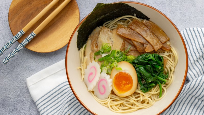 Ramen là món mì nước nổi tiếng của Nhật Bản, gồm mì được nấu mềm, nước dùng đậm đà và các loại topping như thịt lợn, trứng luộc, rau, và rong biển. Mỗi vùng ở Nhật có cách nấu nước dùng khác nhau như miso, shoyu (nước tương), shio (muối) hay tonkotsu (xương heo), tạo nên hương vị đa dạng và phong phú. Ramen không chỉ là món ăn phổ biến hàng ngày mà còn là biểu tượng văn hóa ẩm thực Nhật Bản.